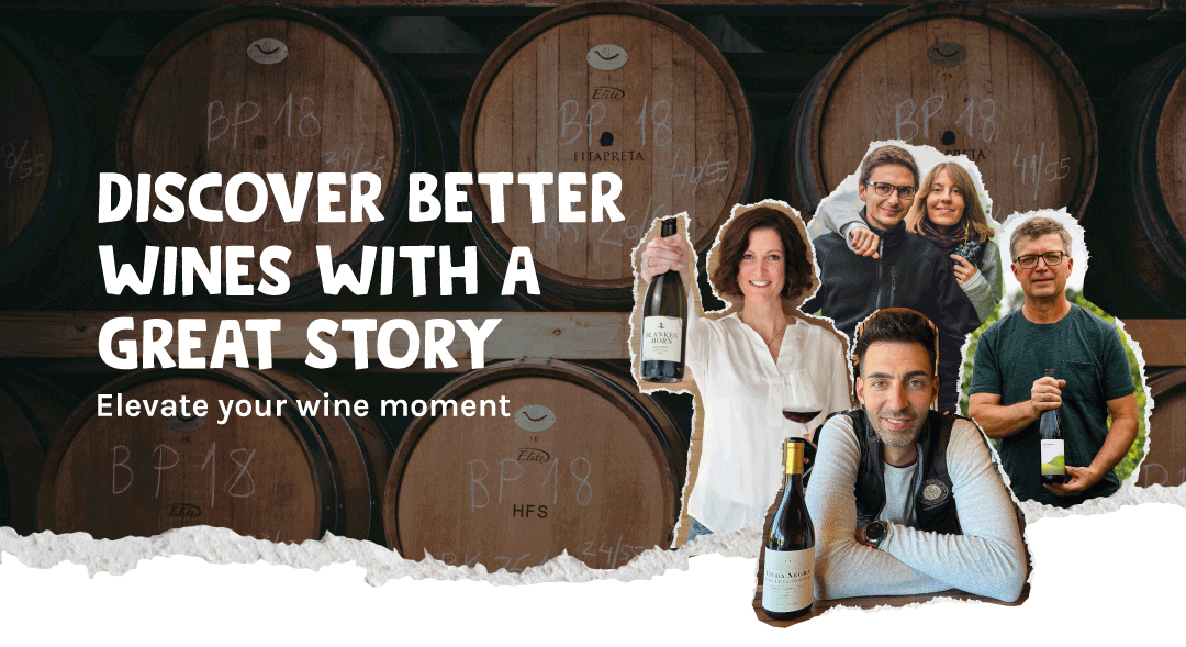 So we only sell wine from small-scale winemakers. Wines made with love and attention. Made by a person who works with sustainability, quality, and taste in mind. You can’t say that about many products nowadays, but you can truly taste the difference. Discover wines you didn’t know you were looking for. Better wines made by small-scale winemakers.