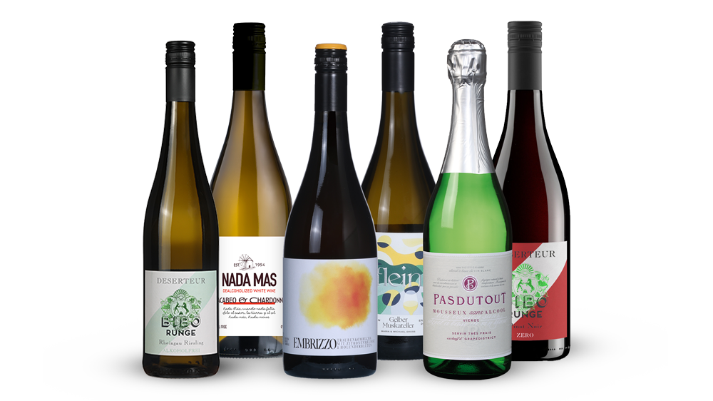 In deze proefbox ontdek je hoe veelzijdig alcoholvrij kan zijn. We beginnen met de frisse bubbels van Pas du Tout, perfect om het glas op te heffen. Daarna gaan we door naar de druivenkombucha Embrizzo van Gut Hardegg; een complexe drank, met body voor de dinertafel. Vervolgens proef je het aromatische druivensap van Gross Flein, gemaakt van Gelber Muskateller en vol florale en fruitige tonen. Daarnaast zitten er nog drie alcoholvrij wijnen in deze proefbox. Een alcoholvrije blend van chardonnay en een beetje macabeo. Vol aroma's van appel, citroen en die typische romigheid. En we sluiten af met twee wijnen van Bibo Runge. Een riesling én een pinot noir.Â