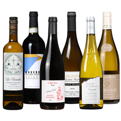 Met deze box haal je een krachtige selectie van onze meest gewaardeerde sale-wijnen in huis. De witte wijnen zijn de frisse, klassieke Bellevue Touraine. Precies zoals je een sauvignon blanc verwacht. De sappige Catalan Eagle is de perfecte blend tussen garnacha blanca en viognier. Daarnaast hebben we de complexe Colleozio in deze box gestopt. Het is een echte wijnspijs tijger met bijzondere aroma's van amandelen, walnoten en verfijnde kruidigheid. Tot slot, sluiten we wit af met de verfijnde Bordet Bourgogne Blanc. Een chardonnay uit het boekje: gelaagd, rijk en lekker sappig. Voor de rode wijnliefhebber hebben we de fluweelzachte Colle Adimari Chianti Governo, een intense en romige blend van sangiovese en merlot. De laatste wijn uit de box is de fruitige Domaine Perol Beaujolais. Deze wijn is een echte fruitbom vol frambozen en kersen, maar tegelijkertijd veel frisheid. Elke fles in deze box vertelt een authentiek verhaal en biedt de hoogwaardige kwaliteit die je van onze onafhankelijke boeren gewend bent, maar dan nu tegen een lage prijs. Ontdek deze box!